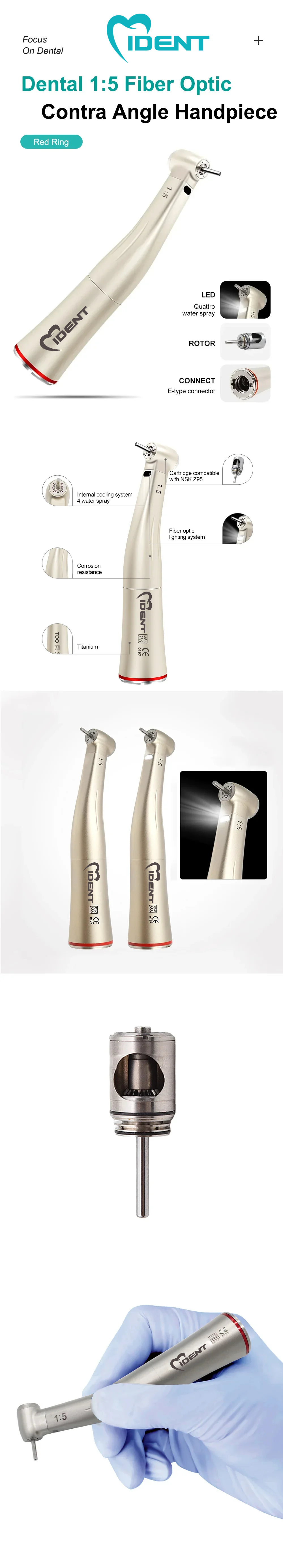 Dental handpiece 1:5 Push Button Low Speed Fiber Optic Contra Angle Handpiece Dental Equipment With Red Ring X95L