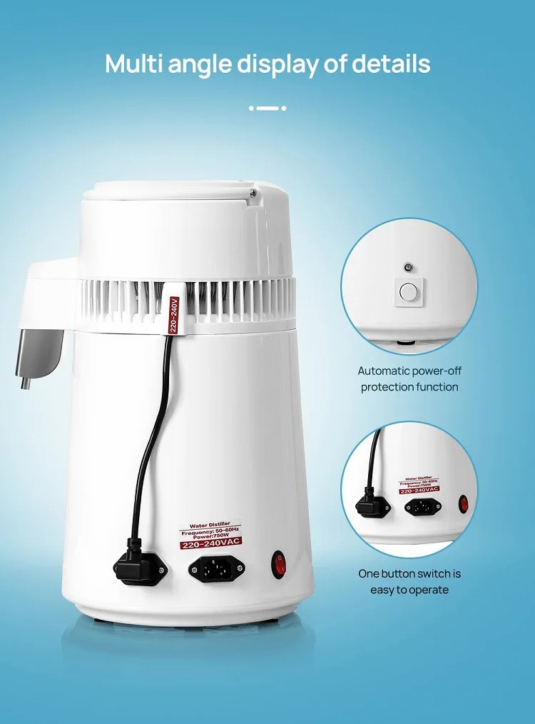 Dental Water Distiller 4L Medical Filter Purifier Distilled Purify Pure Dew 1L/h Megahome Water Distiller