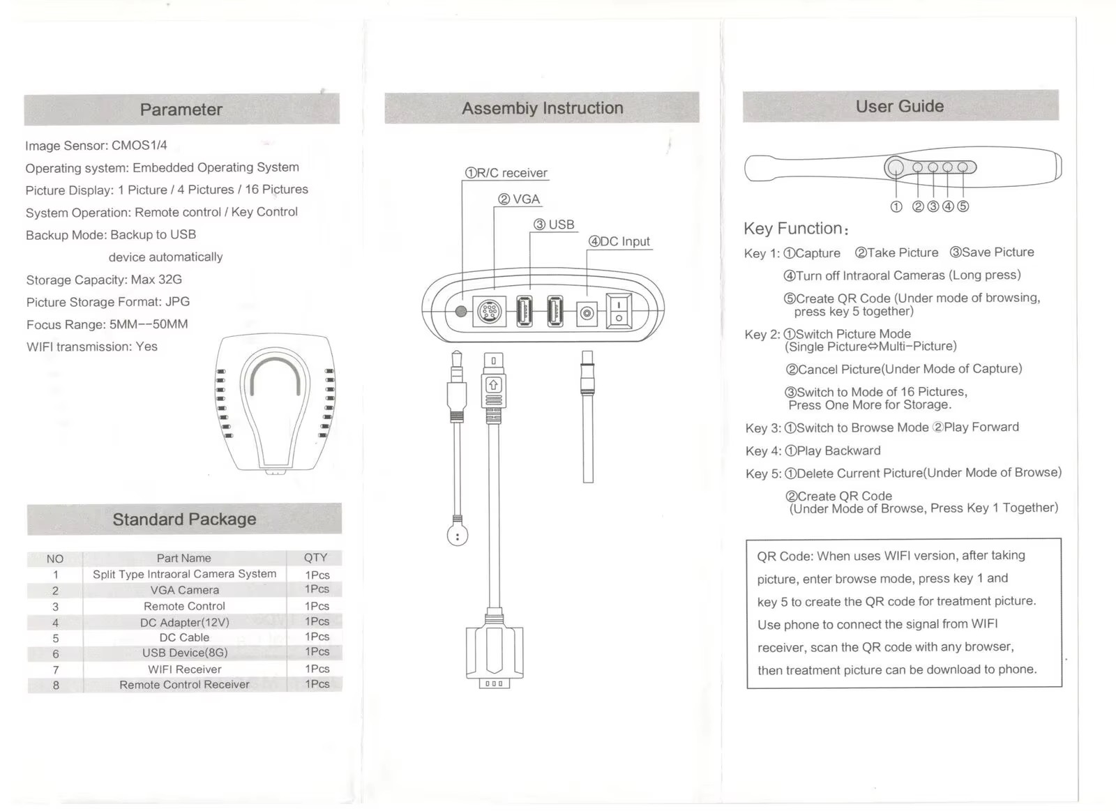 When uses WIFI version, after taking picture, enter browse mode, press key 1 and key 5 to create the QR code for treatment picture.