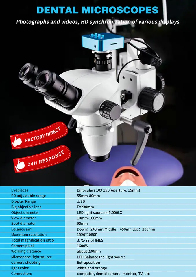 Dental Microscope Chair Mounted Easy Move Long Arm Digital 2.5-25x Magnification Surgical Microscope