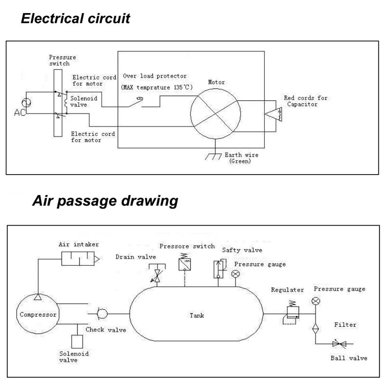 3. The piston of air compressor is made from high temperature resistant and abrasion resistant non-metal material and is able to work without lubrication for a long time.