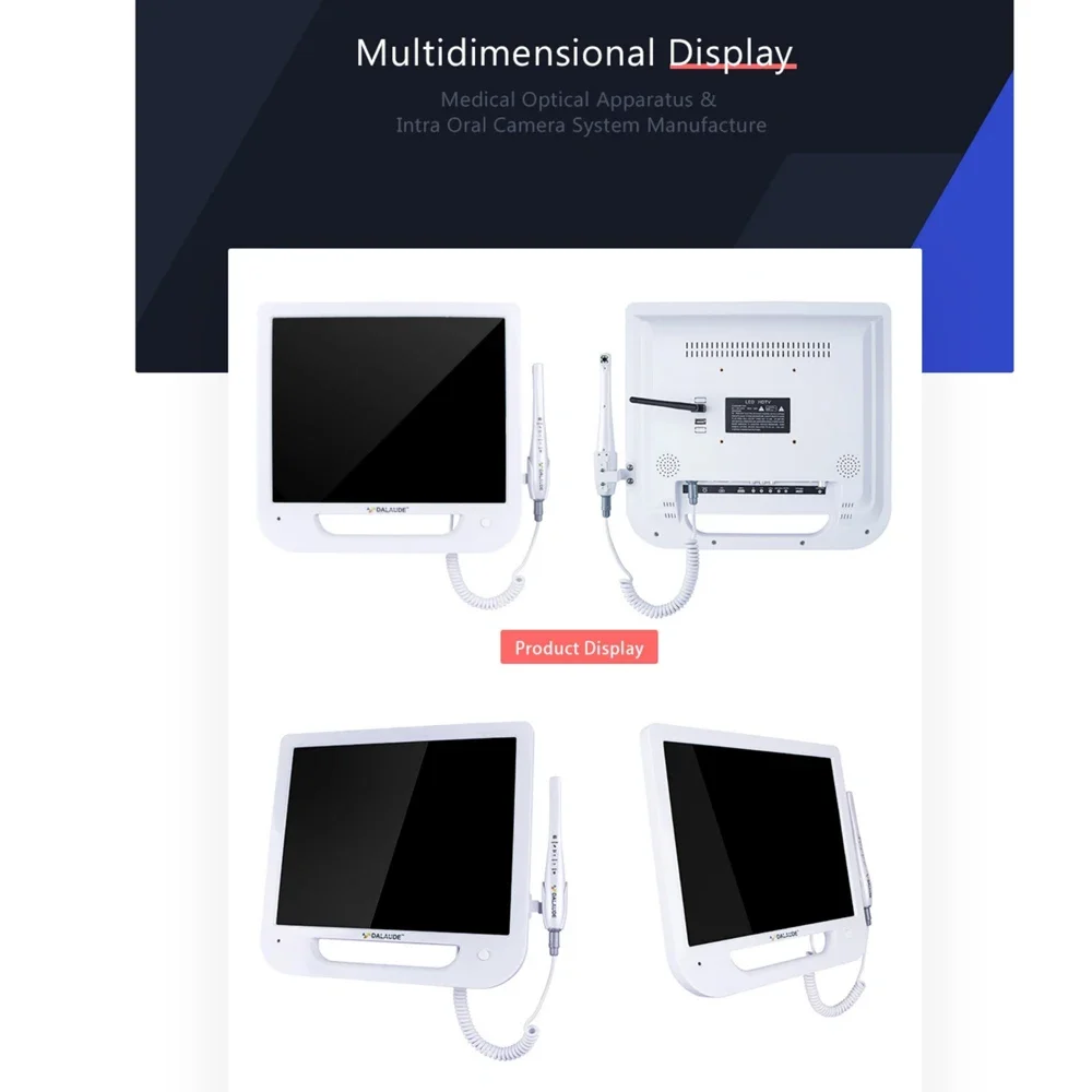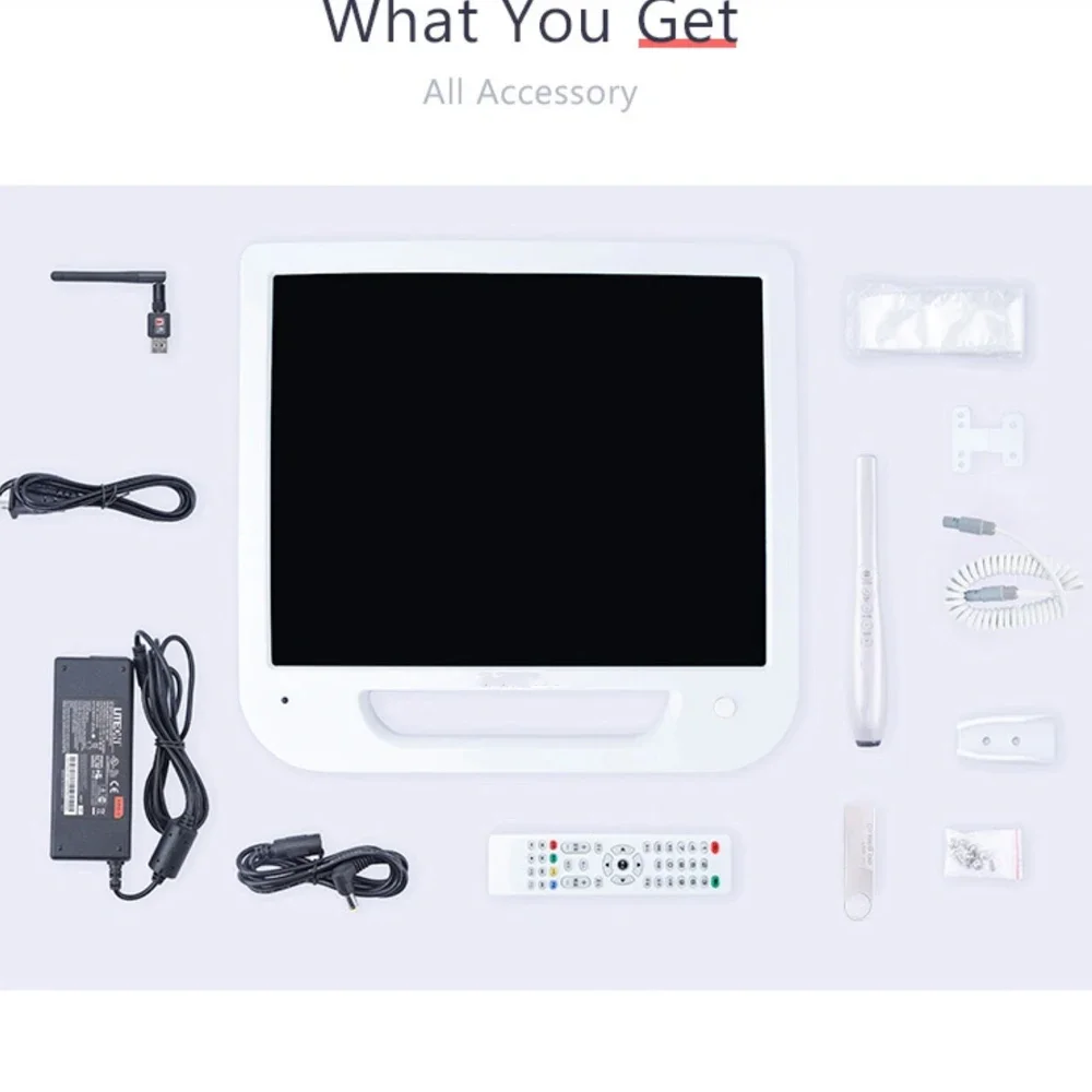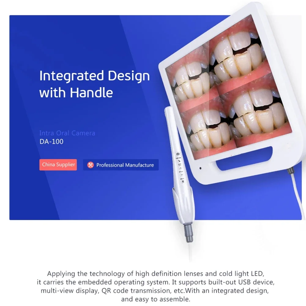 1.This dental intraoral camera comes with 17 inches big monitor and streamlined design handle;