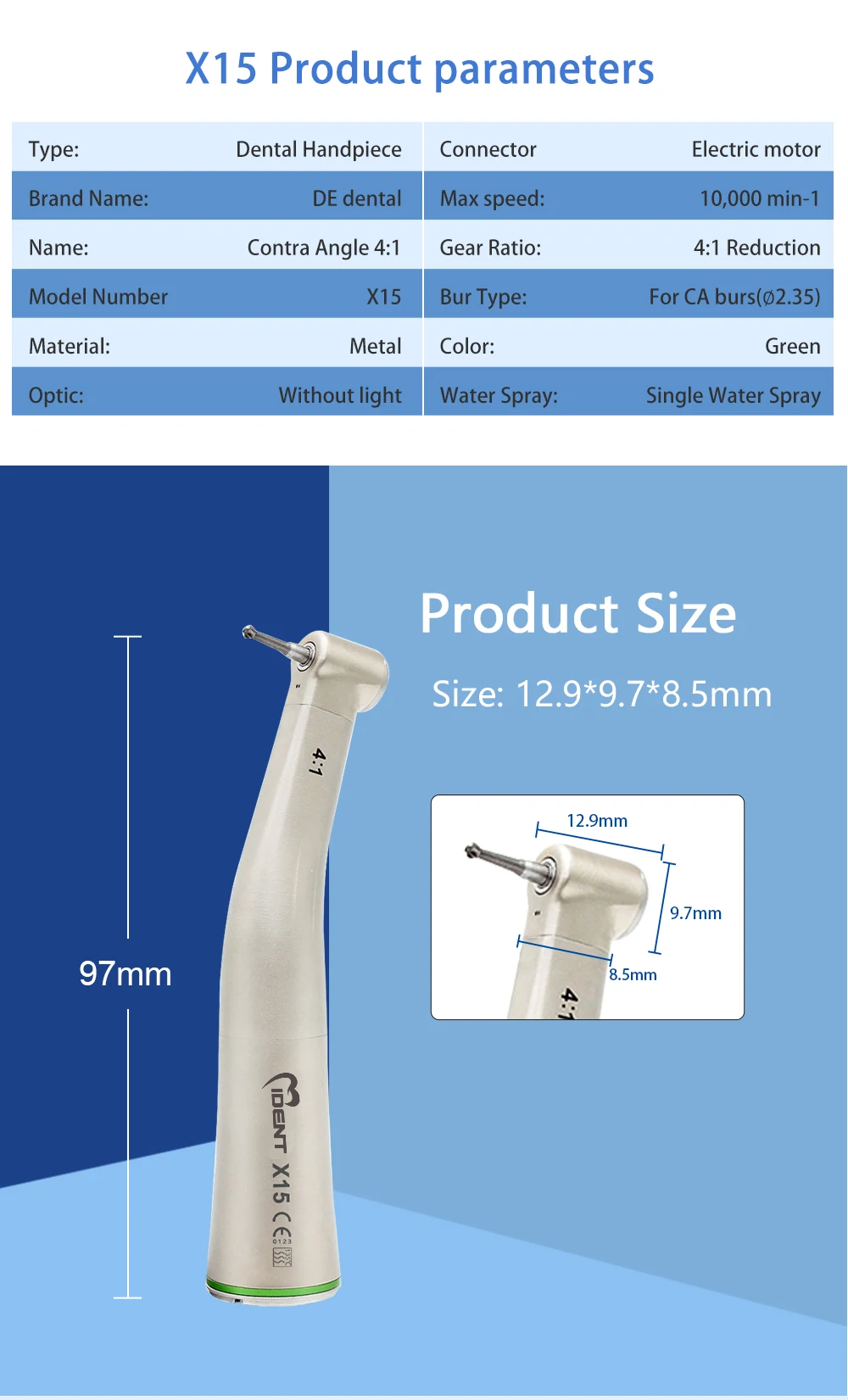 Gear Ratio:4:1 Reduction Bur Type:For CA burs(o2.35)