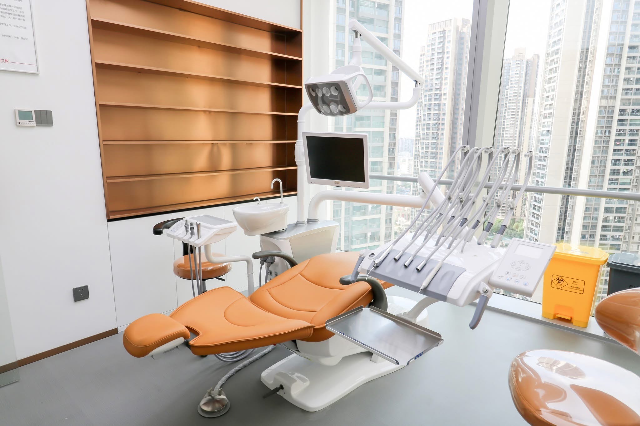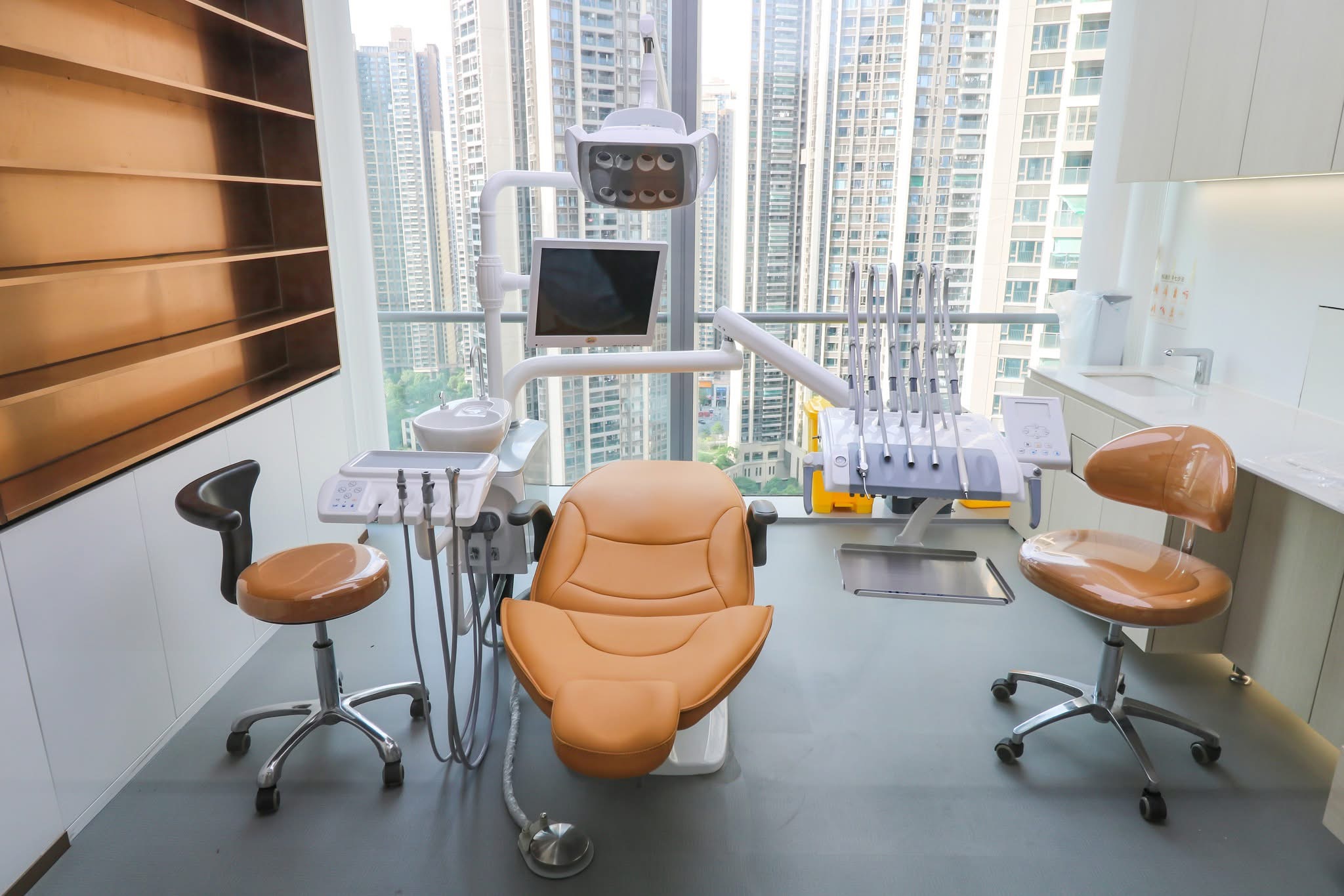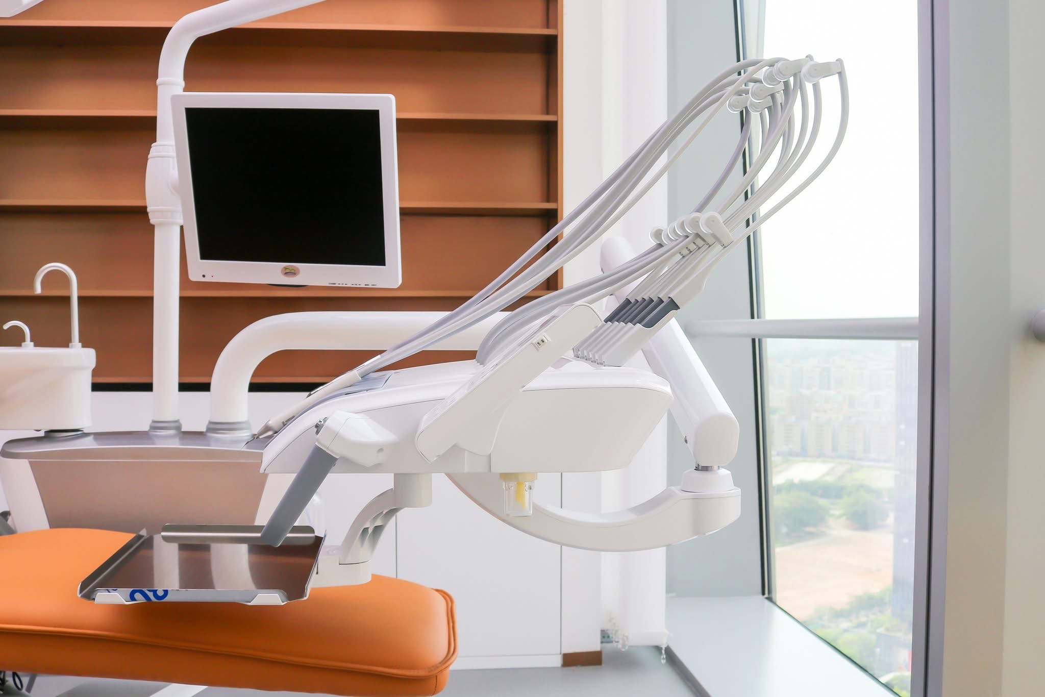 Dental hanging chair Best Price of IDENT Dental Chair High Precision Dental Unit Orthodontic with Surgical Lamp 6 Hanging Racks Hanging on Top