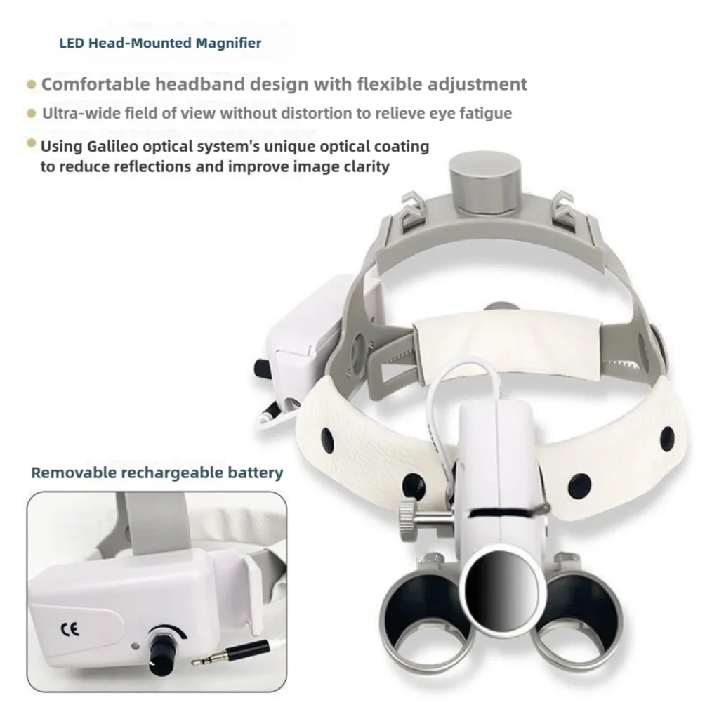 Dental loupes headlamps dentist’s laboratory medical equipment with circular LED dental magnifiers spotlights