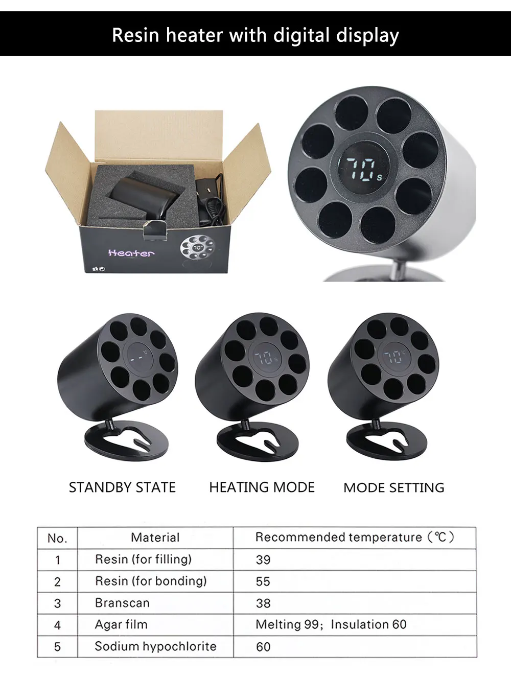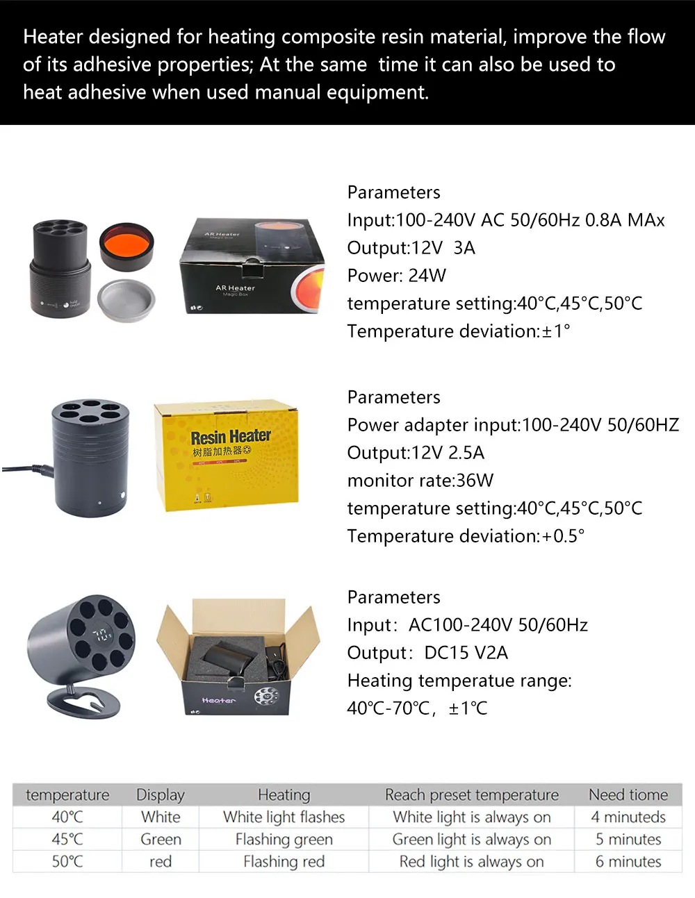 Heater designed for heating composite resin material,improve the flow of its adhesive properties;At the same time it can also be used to heat adhesive when used manual equipment.