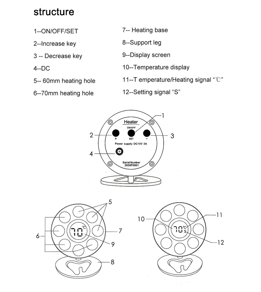 Heater use the precision circuit control module to heat,control the temperature tolerance within 1 degree,According to your choice of material and it can set 40℃45℃50℃.