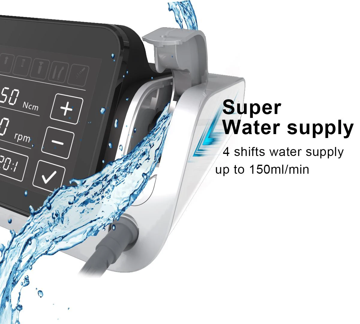 Built in water supply system with small size, good performance andconvenient connection. 4 shifts water supply up to 150mI/min