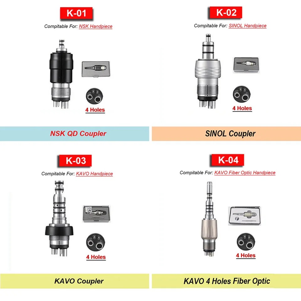2. 4/6 Holes, 8 Types, For NSK/KAVO/Sirona/SinOL High-speed Dental Fiber Optic Handpiece.