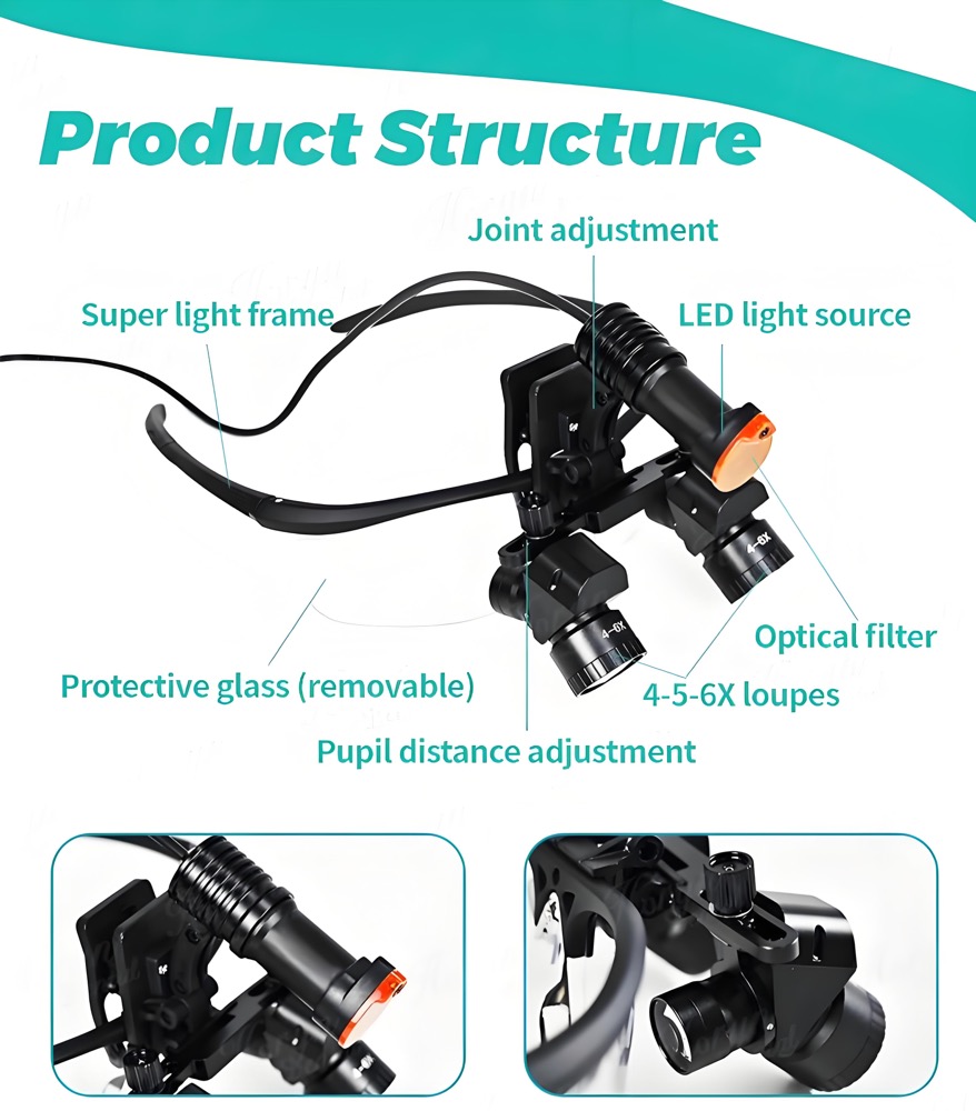 Dental Loupes Light/freely Adjustable Magnification of 4~6X/5w LED LAMP