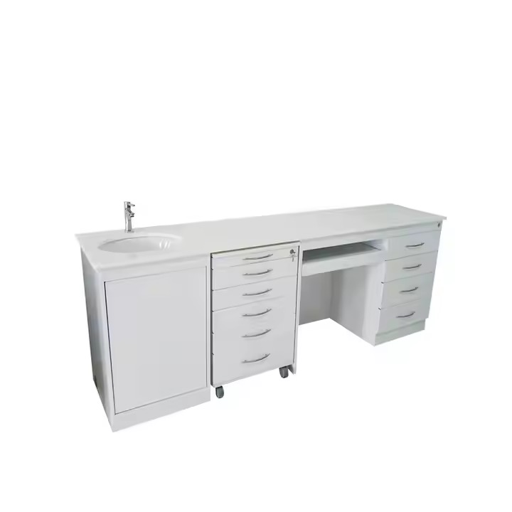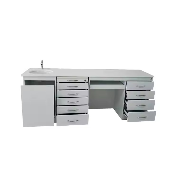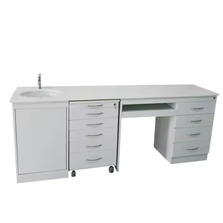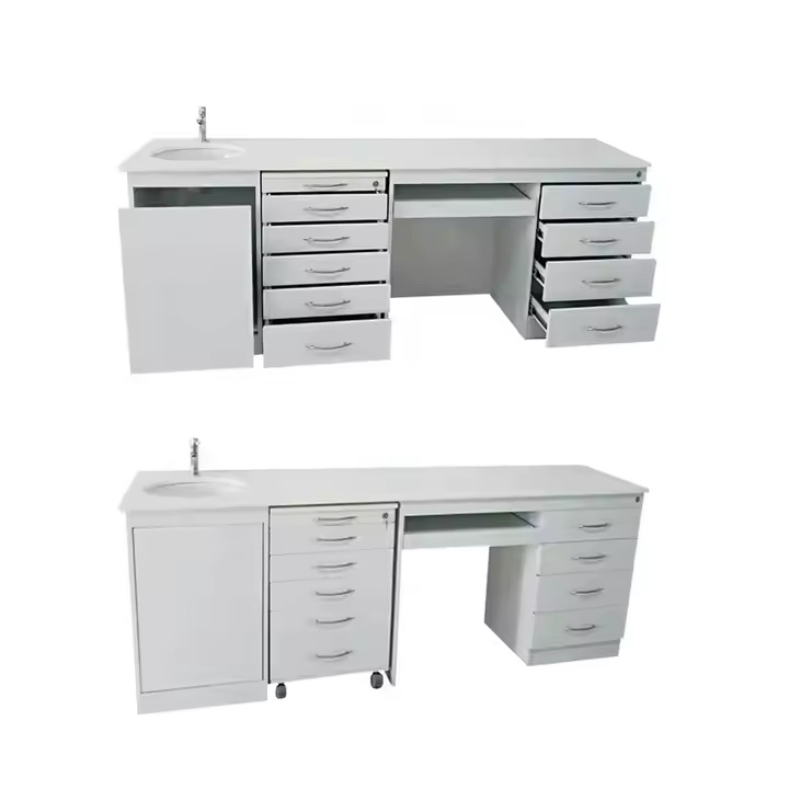 Dental cabinet medical customized stainless steel 5 drawers mobile cabinet marble table with sink