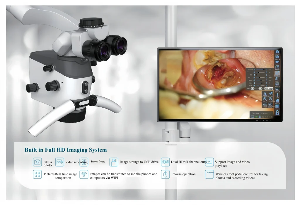 Dental Microscope Full HD 3D Microscope with Built-in 4K Camera Oral Microscope Magnification Magnification Lens, LED Light Source