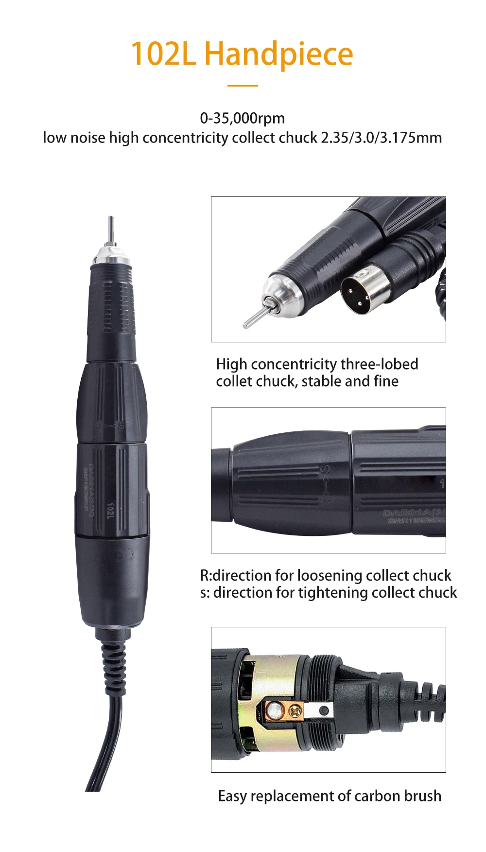 Dental Motor MARATHON / STRONG 102 105L 102L H37L E-type handle 35K 40K RPM Dental Micromotor Polishing Handpiece Dental Motor Lab Equipment
