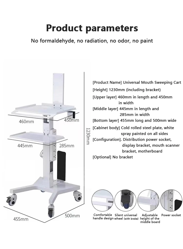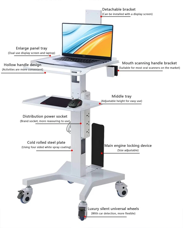 Dental trolley Oral scanning mobile small cart dental clinic oral scanning instrument bracket medical cart base medical computer trolley