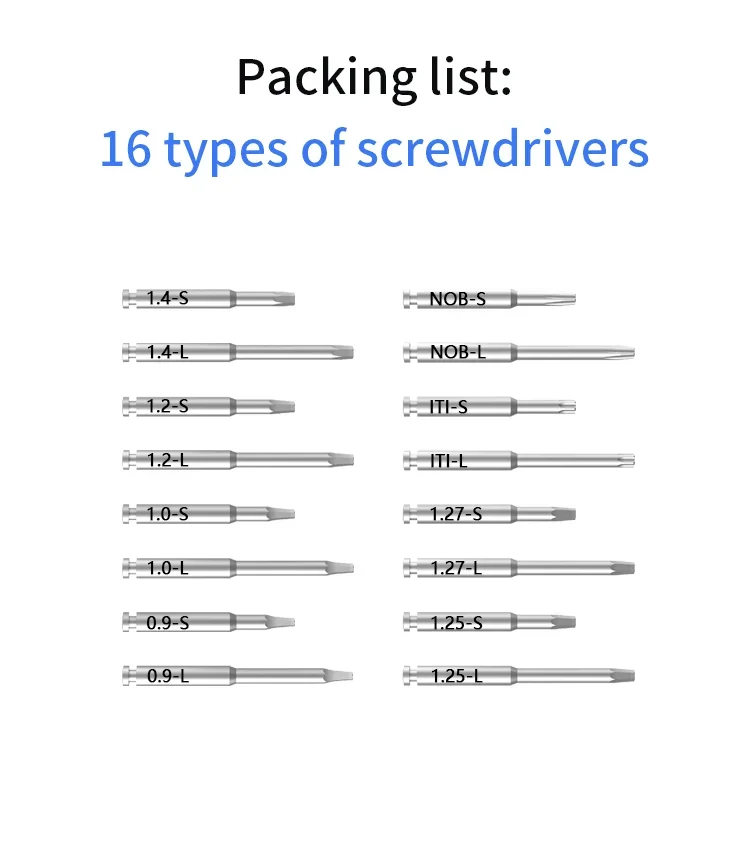 | Screw tips | 16 pieces ( for multiple implant brands) |