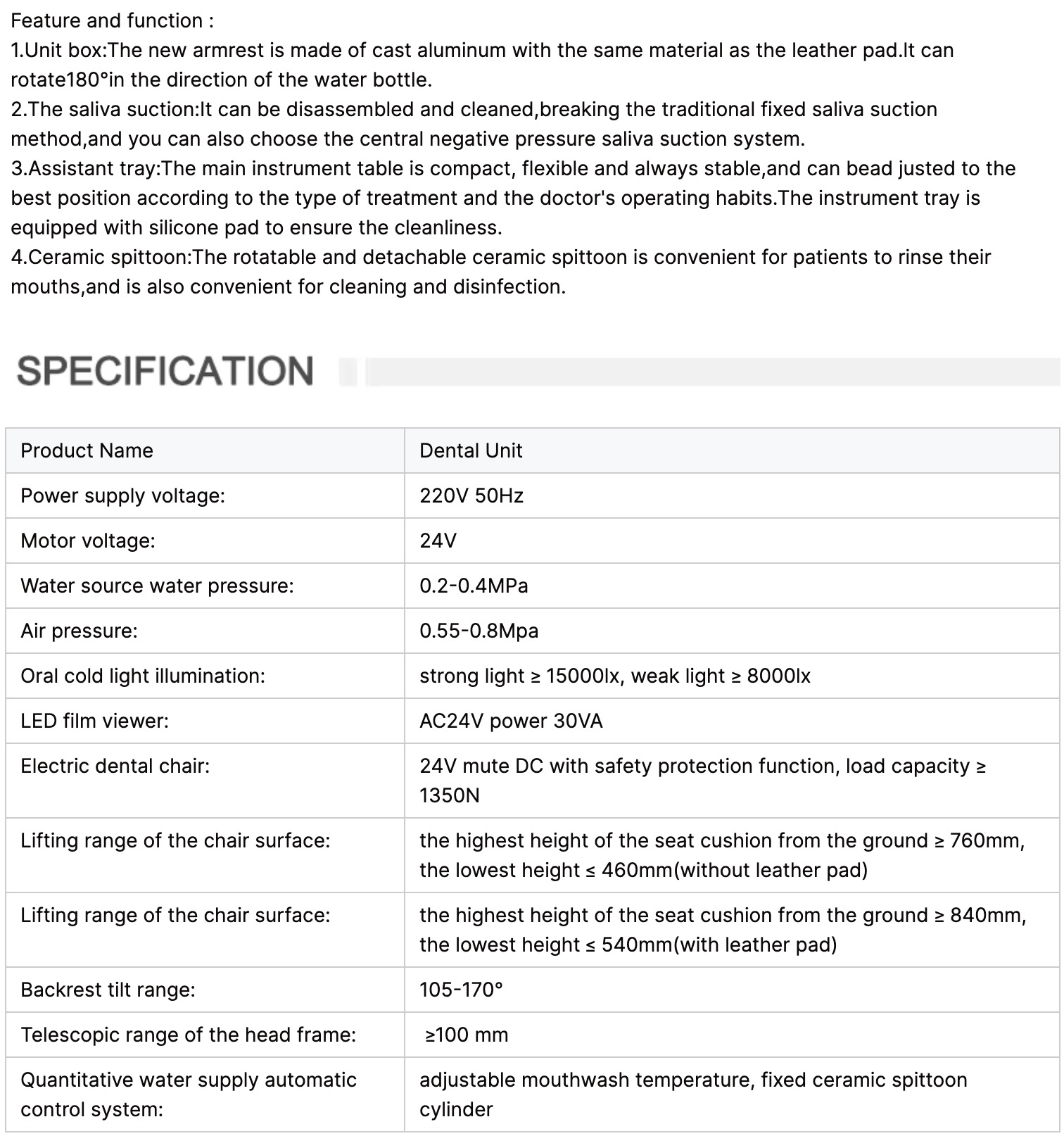 Electric dental chair:24V mute DC with safety protection function, load capacity z1350N